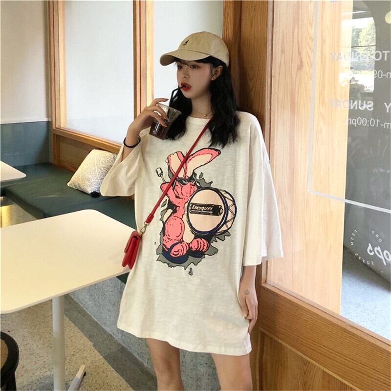 夏の東大門漫画プリントルーズラージサイズミディアムロングラウンドネック半袖Tシャツ女子学生 ショート ハーフスリーブ 大きめサイズ サマー 夏物 Oネック suifa89168237500 | shop CFT