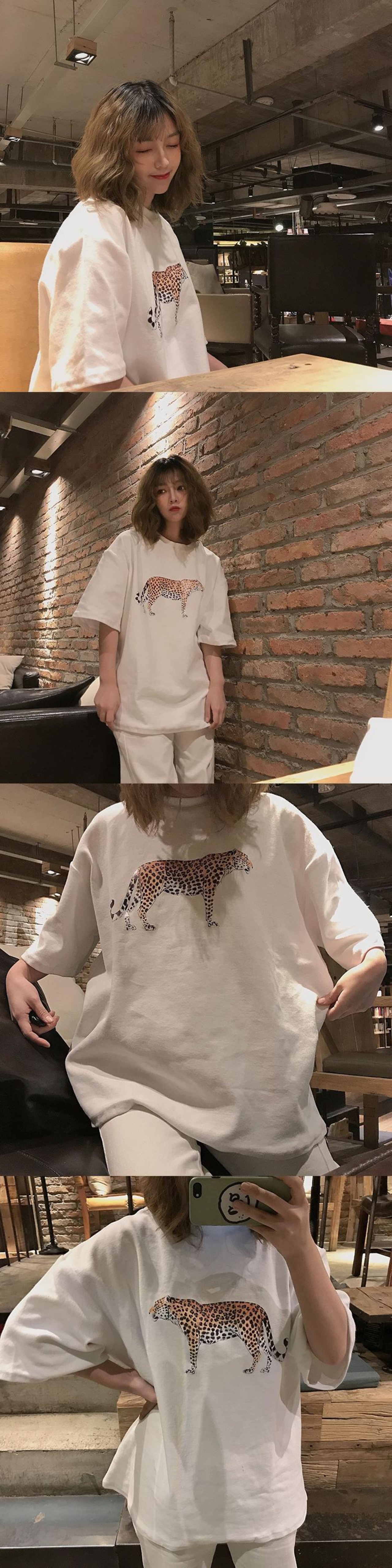 6535コットンサマーバージョンのBFウィンドルース原宿スタイルヒョウ柄半袖レディースTシャツラウンドネックプルオーバートップ かわいい 夏物 Oネック suifa7182167971 | shop CFT