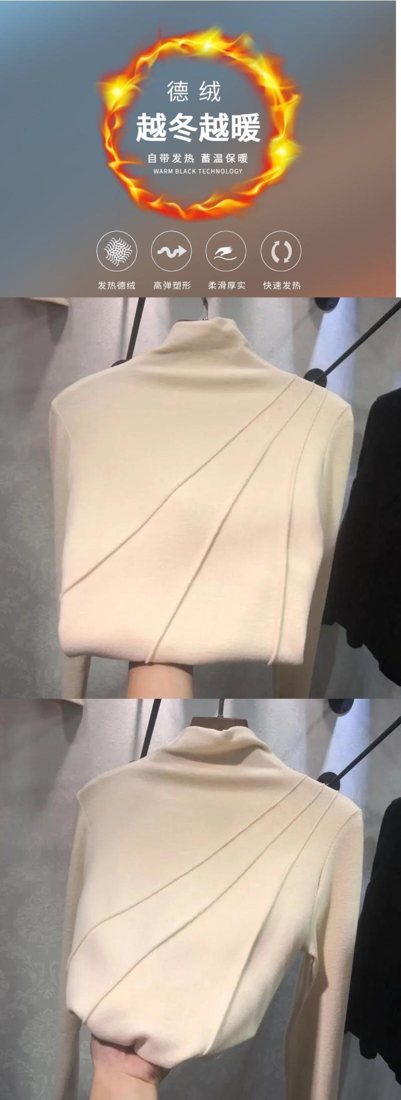 ハーフハイカラーのドイツのベルベット自己発熱ボトミングシャツの女性に加えて、秋と冬のワイルドな新しいスタイルの起毛長袖シャツで裏打ちされたベルベットの厚みがあります ロング オータム 秋物 ウィンター 冬物 suifa40254169230 | shop CFT