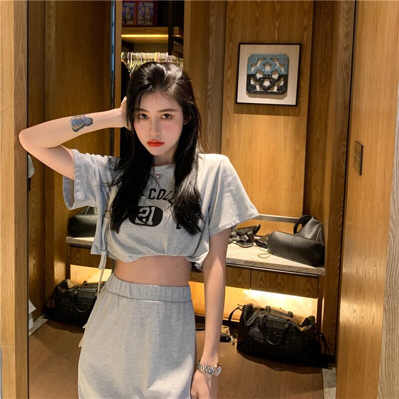 ツーピースドレスサマーニュースタイル香港スタイルショートプリントTシャツハイウエストハーフレングススカートファッションカジュアルスーツ ハイウェスト 夏物 suifa34334000406 | shop CFT