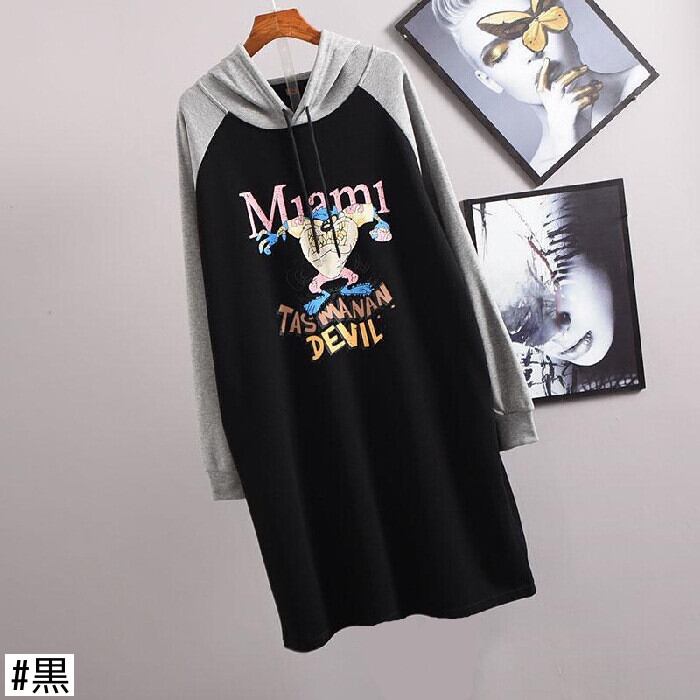 プラスサイズの春と秋のミドル丈ドレス女性版年齢削減フード付き学生ルーズ漫画カラーマッチング長袖セータードレス ロング 大きめサイズ スプリング 春物 オータム 秋物 suifa77594322324 | shop CFT