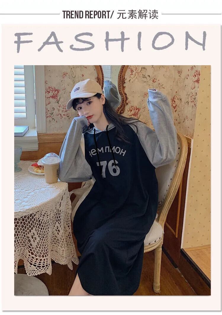 ヨーロピアンステーションニューミドル丈レイジースタイルルーズニーレングスカラーマッチングワンピースファットMMラージサイズレターフード付き婦人服 大きめサイズ suifa12103937329 | shop CFT