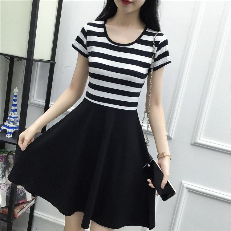 ドレスレディースサマーニュースタイルバージョンラージサイズファッションクロスボーダースタイルレディースストライプ半袖ミドル丈T 大きめサイズ 夏物 suifa65280107643 | shop CFT