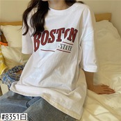 6535コットンバージョンのBFカレッジスタイルのレトロなレタープリントルーズサマー半袖ラウンドネックTシャツレディースボトミングシャツ 夏物 Oネック suifa11876458754 | shop CFT