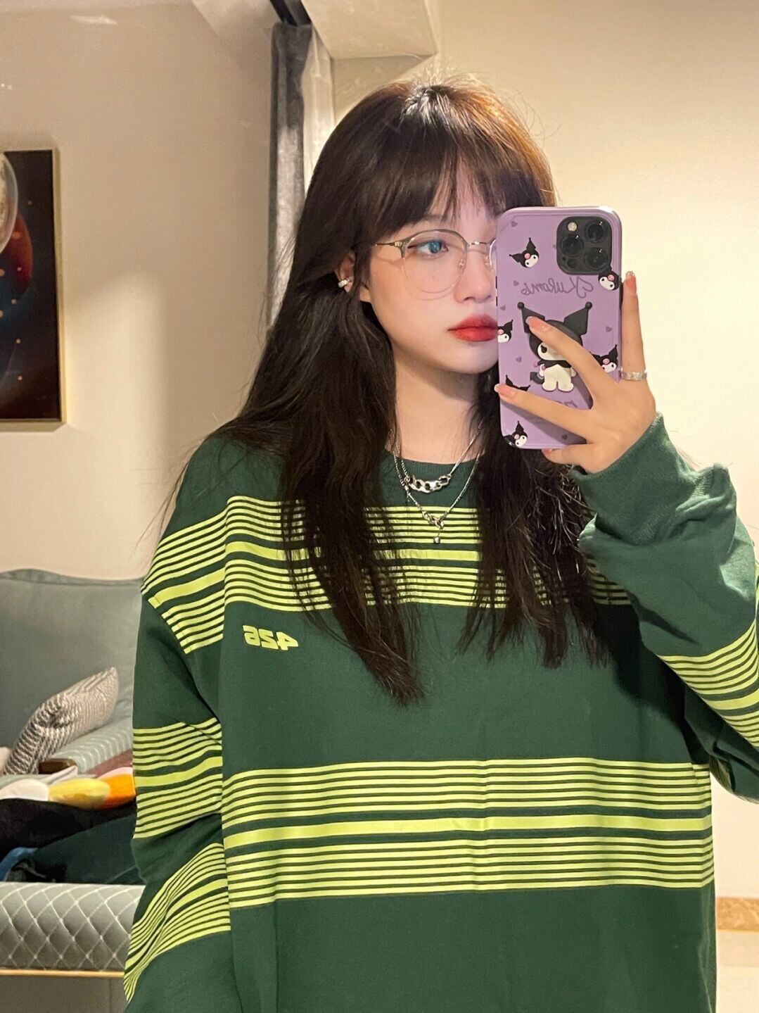 香港ストライプ長袖セーターレディースヨーロピアンアメリカンスタイルアメリカンレトロレイジースタイルラウンドネックトップ秋 ロング オータム 秋物 Oネック suifa42669781792 | shop CFT