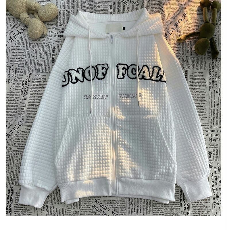 刺繡文字フード付きセーターレディーススタイルゆるい春と秋の学生怠惰な風カーディガンワッフルチェーンジャケット レッド 刺繍 スプリング 春物 オータム 秋物 suifa63784065682 | shop CFT