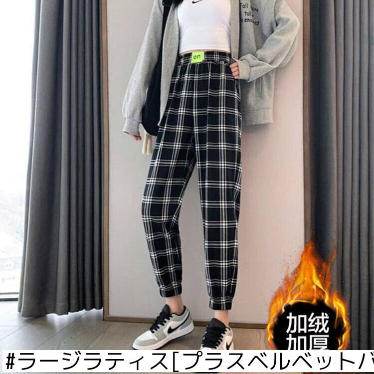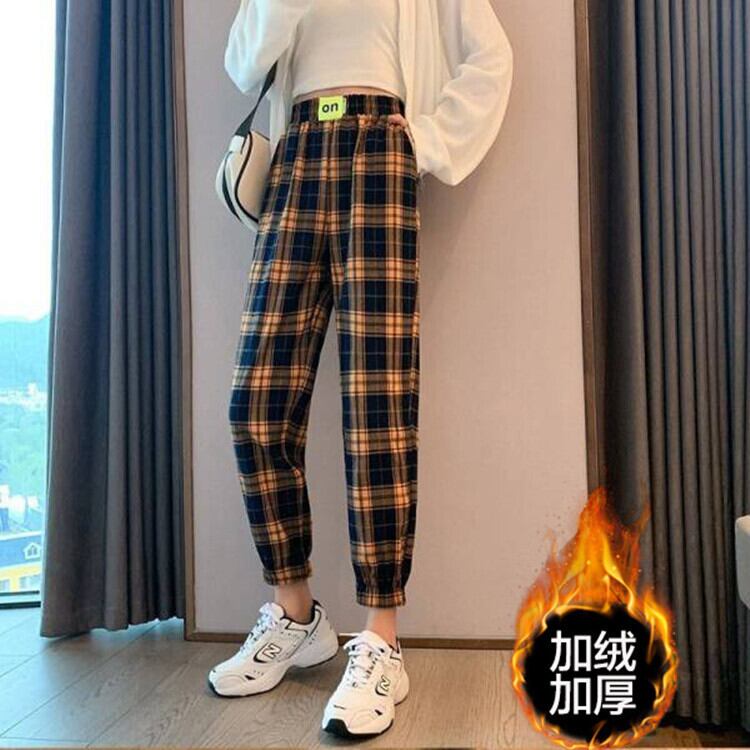 プラスベルベットの厚みのある2022年の新バージョン秋と冬のルーズで薄いチェック柄のズボンファッションハイウエストハーレムパンツの女性 ハイウェスト オータム 秋物 ウィンター 冬物 suifa64509596003 | shop CFT