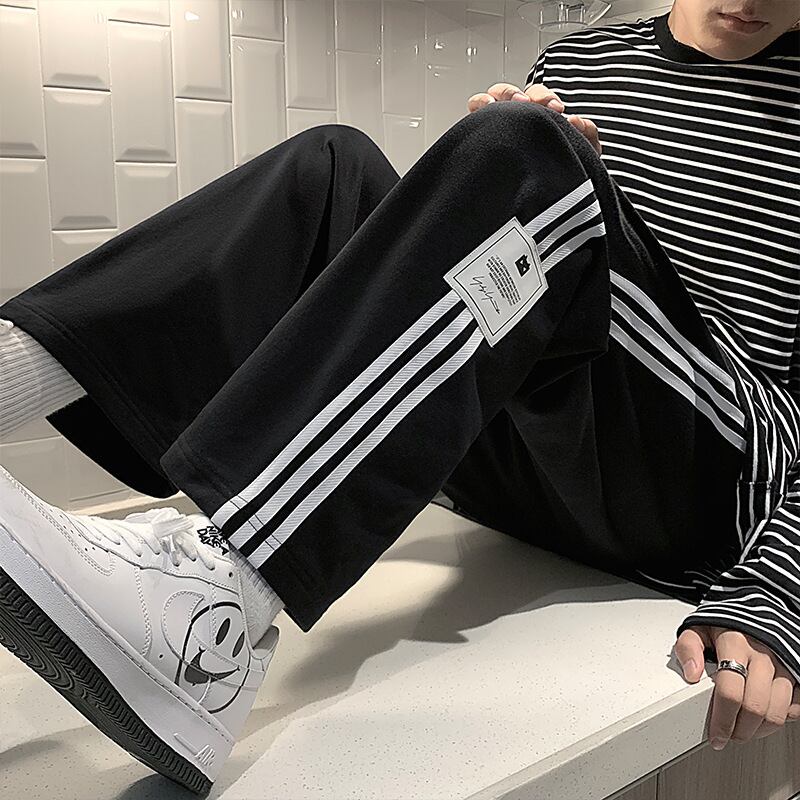 ストライプスポーツパンツレディース春秋ルーズハイストリートモップパンツインタイドブランドストレートカジュアルワイドレッグパンツ スプリング 春物 オータム 秋物 suifa30652691740 | shop CFT