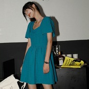 夏のハイウエストドレスデザインセンス小学生新作パフスリーブ半袖オープンバックネクタイスクエアネックスカート ハイウェスト ショート ハーフスリーブ サマー 夏物 スクウェア suifa89431348546 | shop CFT