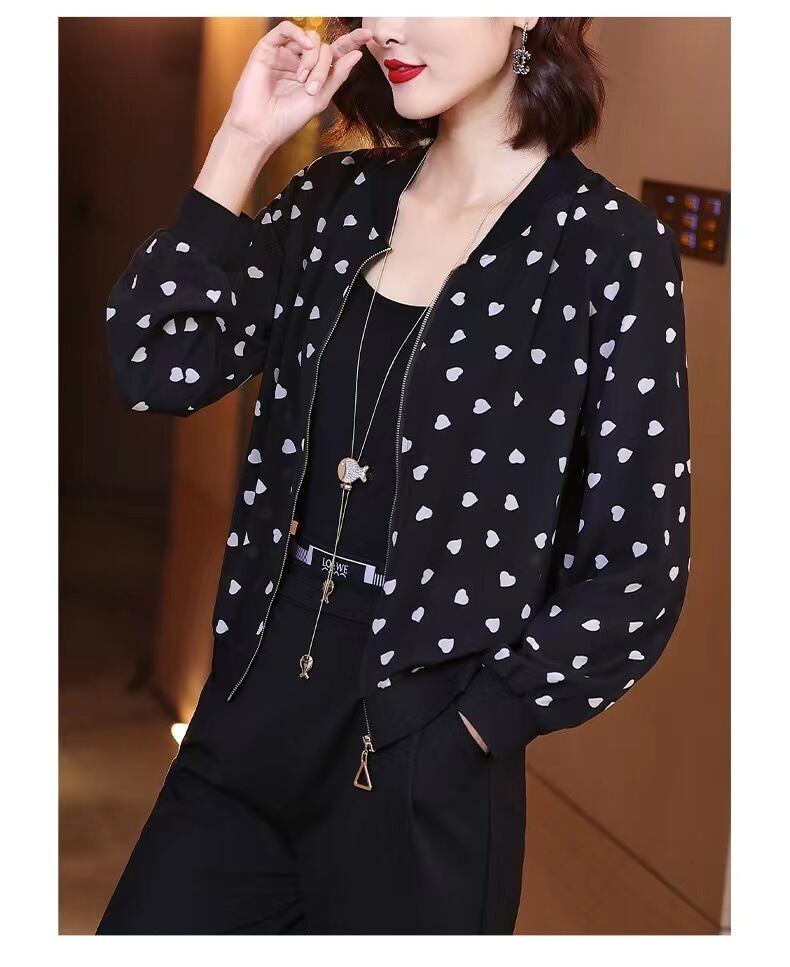 シフォンジャケットレディース春、秋、夏2022年クロスボーダーニューウェーブポイントヨーロピアンアメリカンスタイルルーズジャケット長袖ジッパー野球ユニム ロング スプリング 春物 サマー 夏物 オータム 秋物 suifa85200660392 | shop CFT