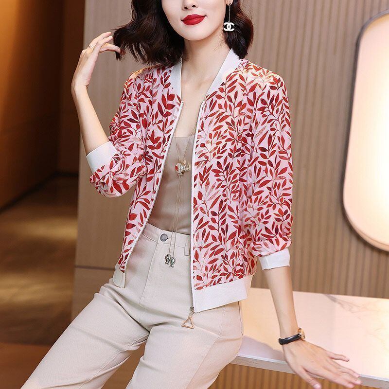 シフォンプリント日焼け止め夏服2022年新作レディースカジュアル野球ユニム長袖カーディガンラージサイズショートコートレディース ロング 大きめサイズ サマー 夏物 suifa69244737329 | shop CFT