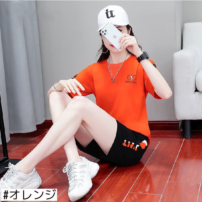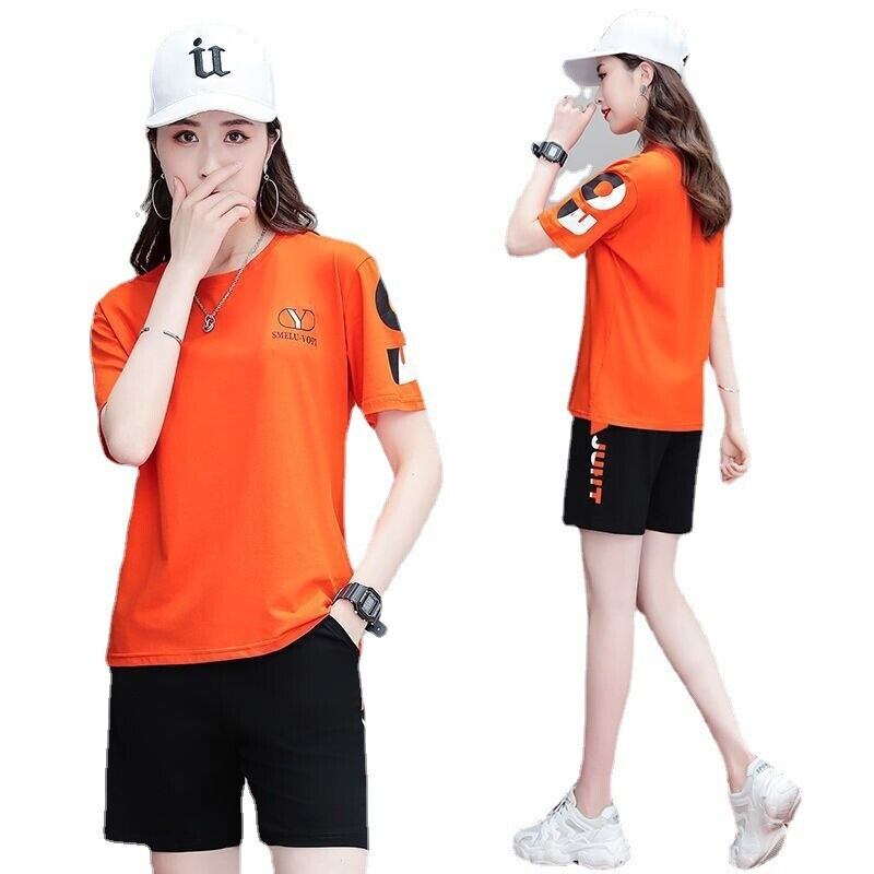 夏のスポーツスーツの女性の2022年の新しいネット赤年齢を減らすカジュアルファッションルーズ半袖スポーツウェアツーピースセット レッド サマー 夏物 suifa80758059038 | shop CFT