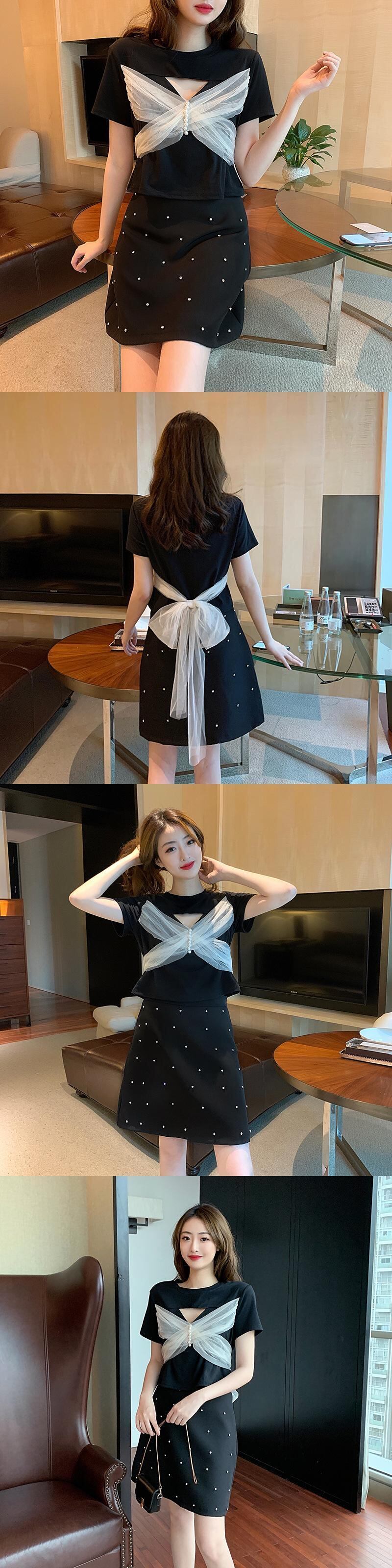 薄いインタイドネット赤の自己栽培のeignスタイルのデザインの女性のステッチメッシュ蝶ネクタイ半袖Tシャツの女性を見せたいという純粋な願望 レッド リボン suifa78727059964 | shop CFT