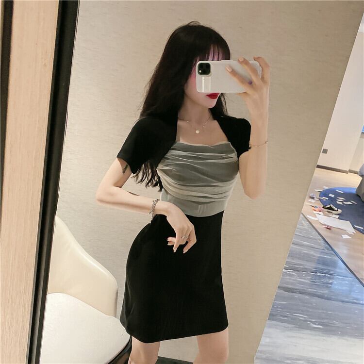ヨーロッパとアメリカンスタイルの国境を越えた新しいハイウエストの純粋な欲求は、薄いメッシュのセクシーなパッケージヒップショートスカートスリム半袖ドレス女性の夏を見せたい サマー 夏物 ピュア ヨーロピアン suifa40163972688 | shop CFT