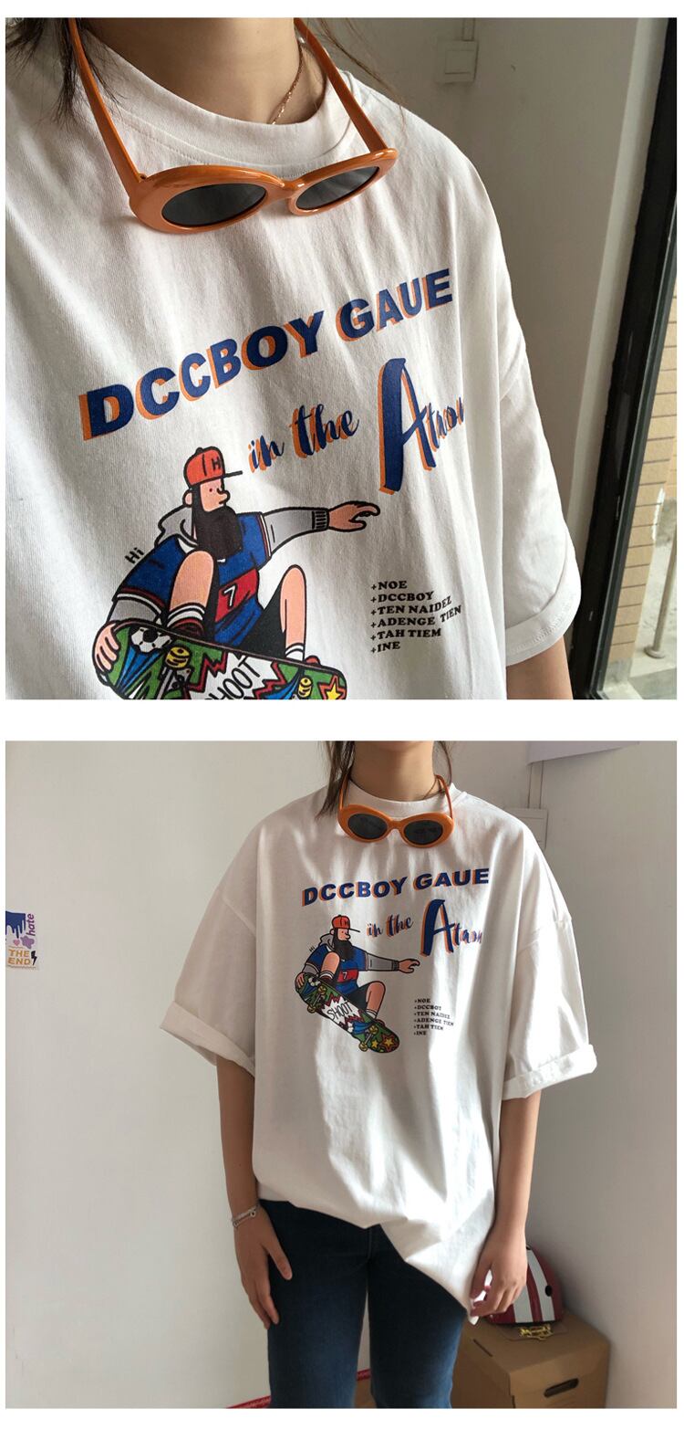 2022年夏の香港スタイルの楽しい印刷ルーズカップルオールマッチ女性バージョンese半袖ラウンドネックボトミングTシャツ サマー 夏物 Oネック suifa75472747093 | shop CFT