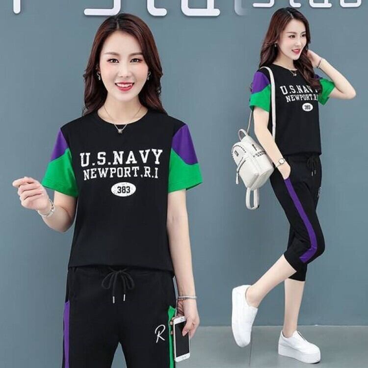 スポーツスーツレディースサマートレンドカジュアル半袖ラージサイズルーズファッションハイエンドクロップドパンツツーピースセット 大きめサイズ 夏物 suifa70516680736 | shop CFT