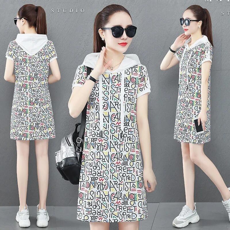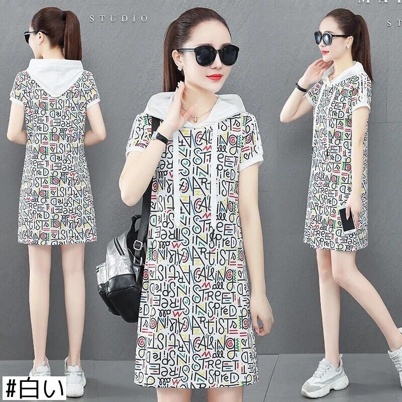 夏のニューエイジを減らすレタープリントカジュアルシンプルなレディーススカートスポーツスタイルルーズファッションミディアム半袖ドレス サマー 夏物 suifa82035239901 | shop CFT