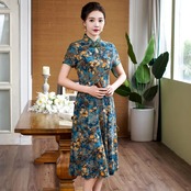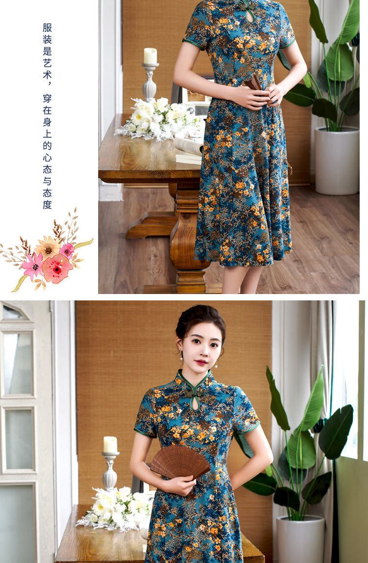 夏のライトラグジュアリーチャイナドレスレディースウエスタンスタイルミドルレングスチャイナスタイル年齢を減らすプラスサイズの半袖プリントドレス卸売 大きめサイズ サマー 夏物 スカート suifa26281849252 | shop CFT