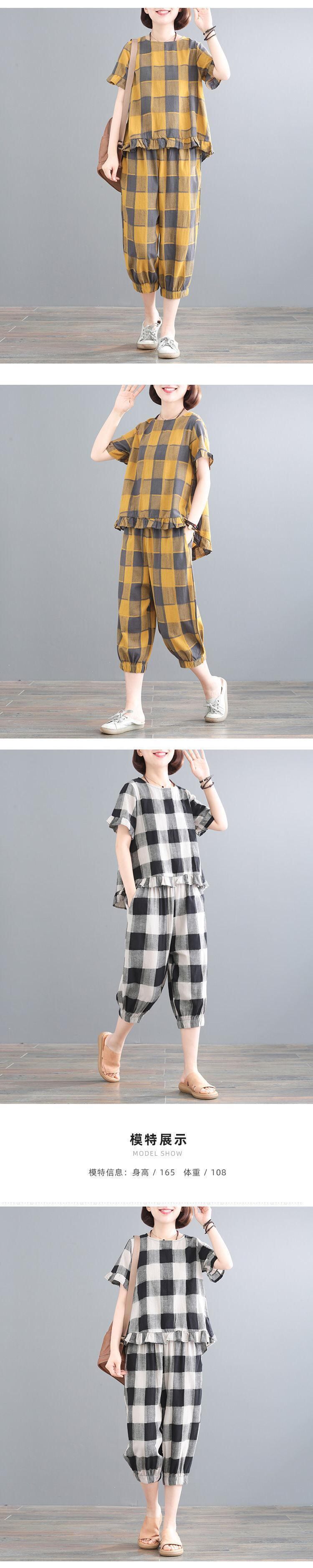 夏のラージサイズのカジュアルスーツの女性の新しい年齢を減らす格子縞のプリントは、若い文学的なルーズなファッションスタイルのツーピーススーツを示しています 大きめサイズ サマー 夏物 suifa62255897957 | shop CFT