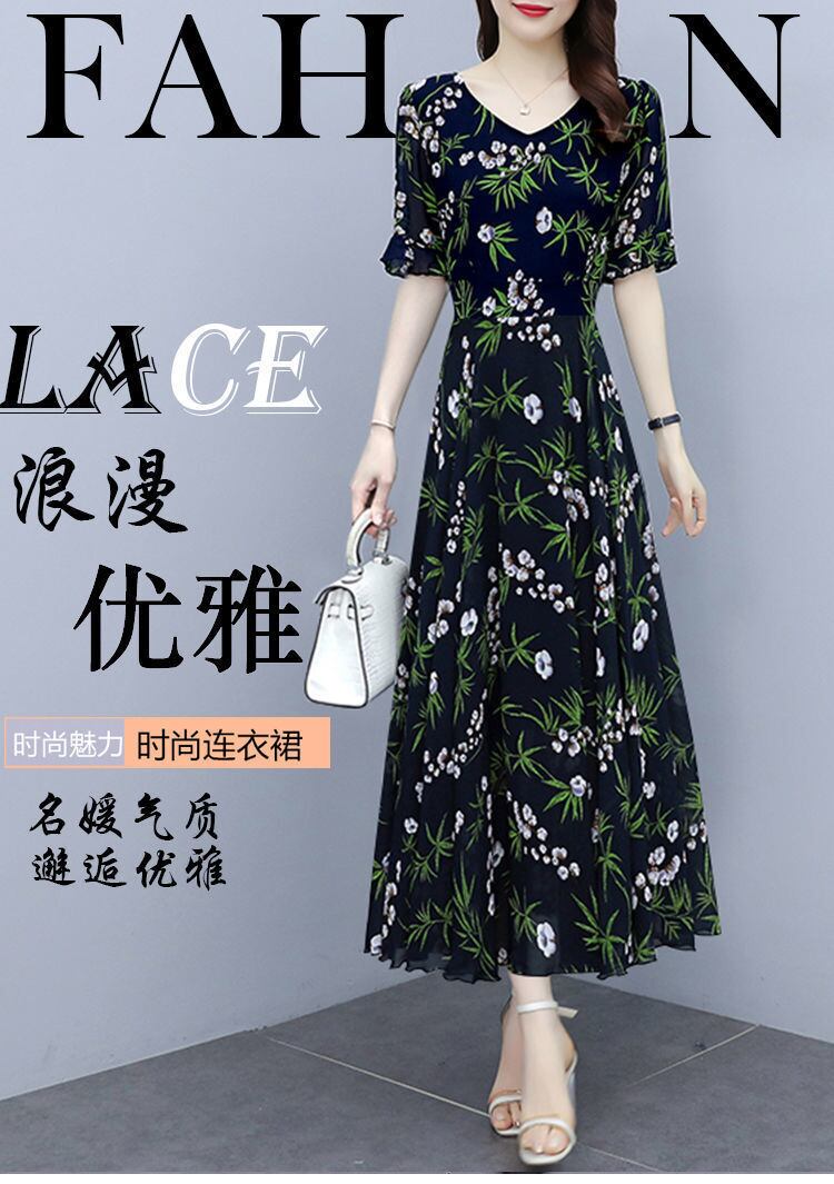アイスシルクプリントラージサイズレディースフローラルファッションドレス2022夏の国境を越えた新しいルーズミートカバーロングスカート 大きめサイズ サマー 夏物 花柄 suifa1824564254 | shop CFT
