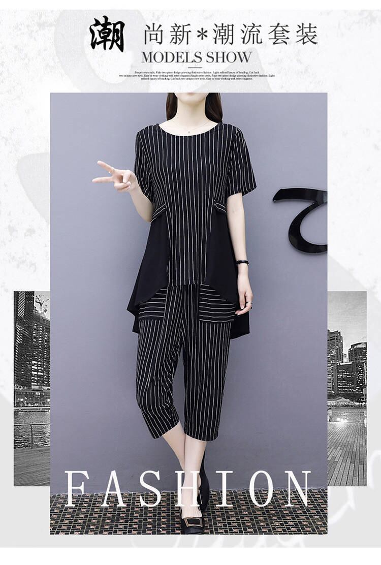 M〜5XLラージサイズサマーストライプスーツレディースヨーロピアンステーションファッション2022新しい半袖クロップドツーピーススーツ 大きめサイズ 夏物 suifa5474984999 | shop CFT