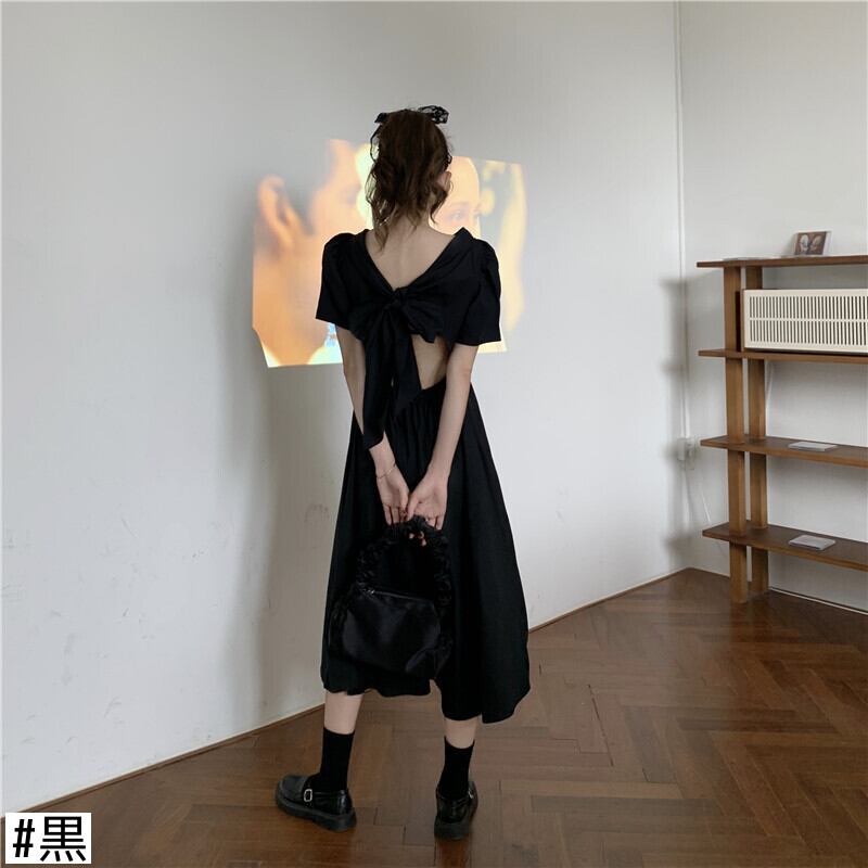 2022年夏のパフスリーブロングスカート純粋な欲望新しいシンプルなオープンバックボウセクシーなヨーロッパとアメリカンスタイルのドレス リボン サマー 夏物 ピュア ヨーロピアン suifa24308750937 | shop CFT