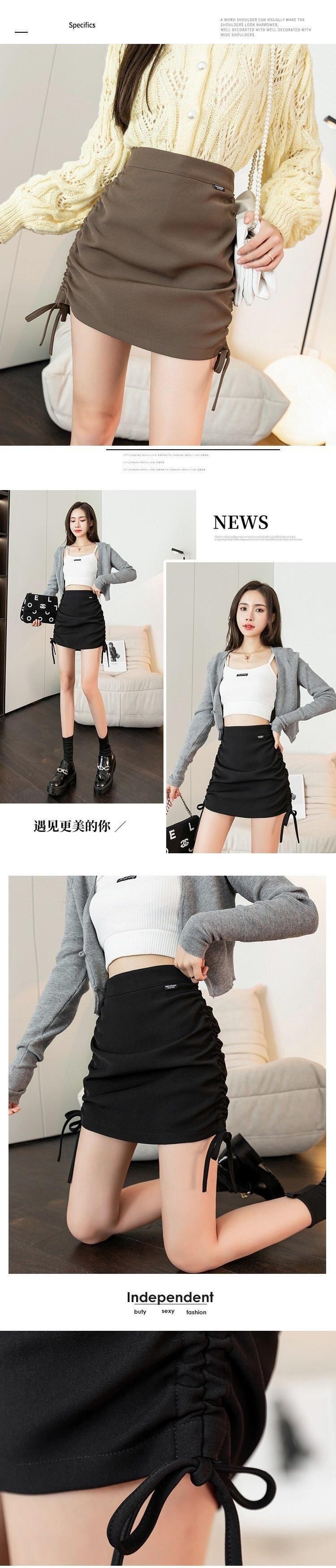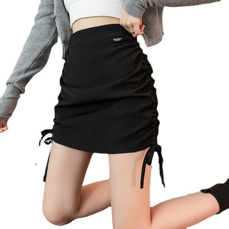インナーサマーハイウエストプリーツドローストリング無地ヒップスカートレディースクロスボーダー新入生ショートスカートの隠しチェーン ハイウェスト 夏物 ソリッドカラー suifa54743244307 | shop CFT