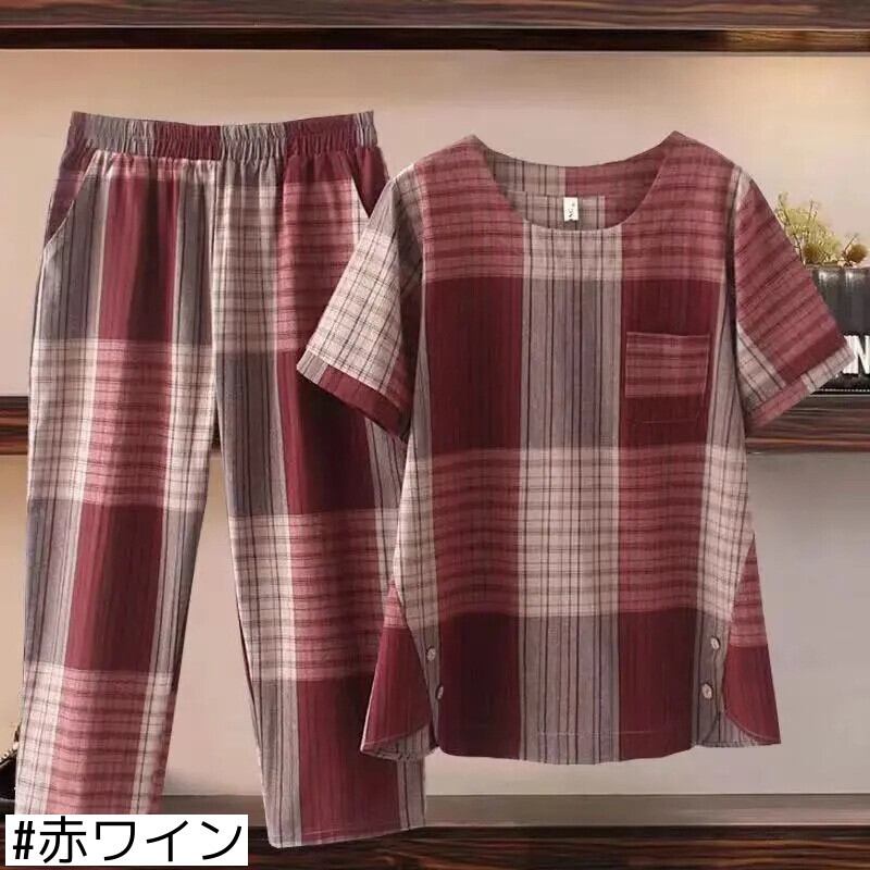 ラージサイズのチェック柄スーツレディースサマークロスボーダーヨーロピアンステーション新作オールマッチカジュアルトップスワイドレッグパンツ半袖ツーピーススーツ 大きめサイズ 夏物 suifa58239075682 | shop CFT