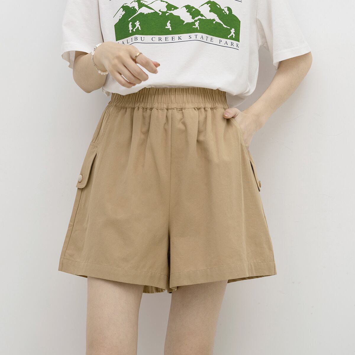 綿ツイル ショーツ 女性 ese 夏 ゆったり 新作 伸縮性 ハイウエスト Aライン ワイドレッグ スポーツパンツ 学生パンツ ハイウェスト コットン エラスティック サマー 夏物 ブルマー ワイドパンツ suifa63546045954 | shop CFT