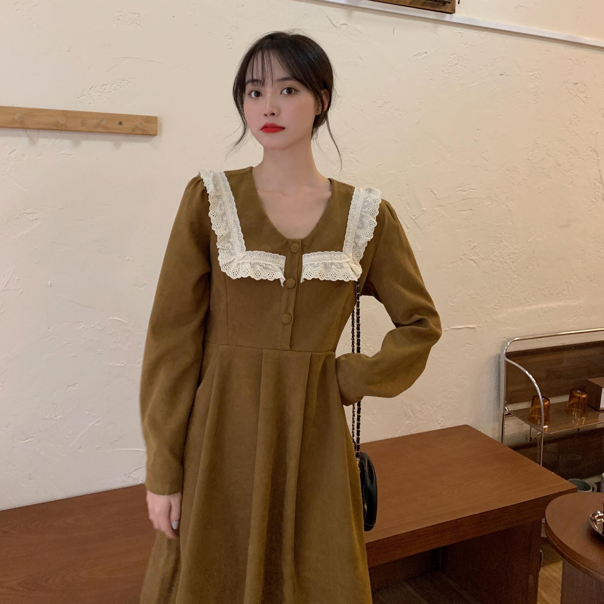 2022 新気質の人形の襟ドレス女性バージョン秋と冬のカレッジスタイルレトロコーデュロイ大サイズ長袖スカート ロング 大きめサイズ オータム 秋物 ウィンター 冬物 suifa53183048011 | shop CFT