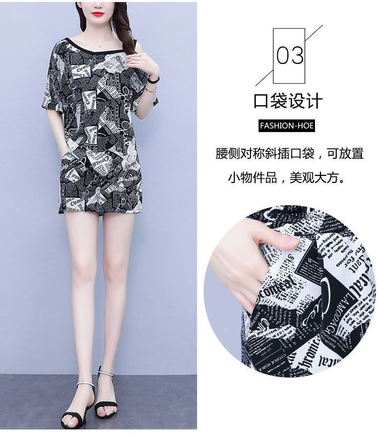 M~5XL 大きいサイズ ファットミリ ファッション プリント スーツ レディース 2022年夏新作 オフショルダー 半袖 ショーツ 2点セット 大きめサイズ サマー 夏物 ブルマー suifa50716463408 | shop CFT