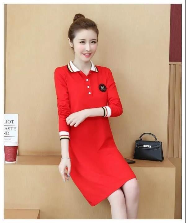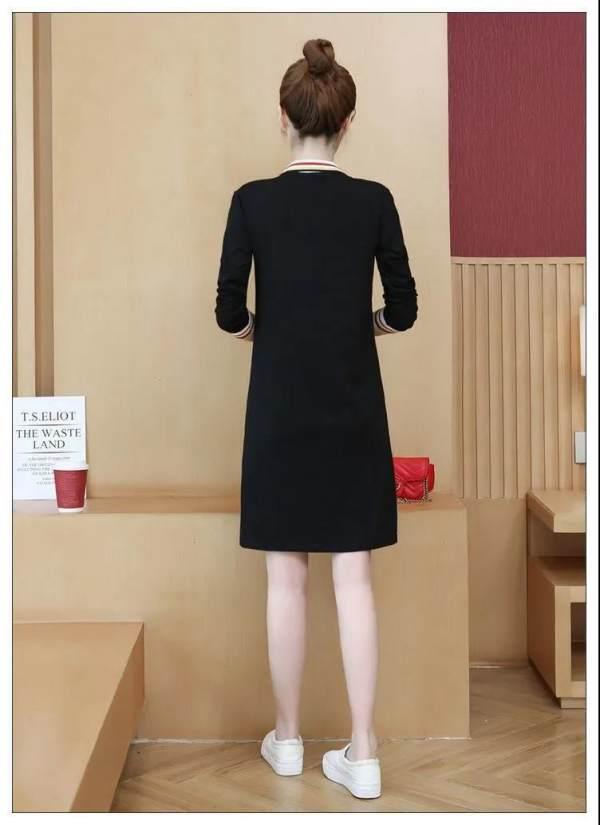春秋長袖ラペルワンピース レディース 大きいサイズ シンプル ゆったり 体型カバー 薄手 ミドル丈 セータースカート ロング 大きめサイズ スプリング 春物 オータム 秋物 suifa4198234244 | shop CFT
