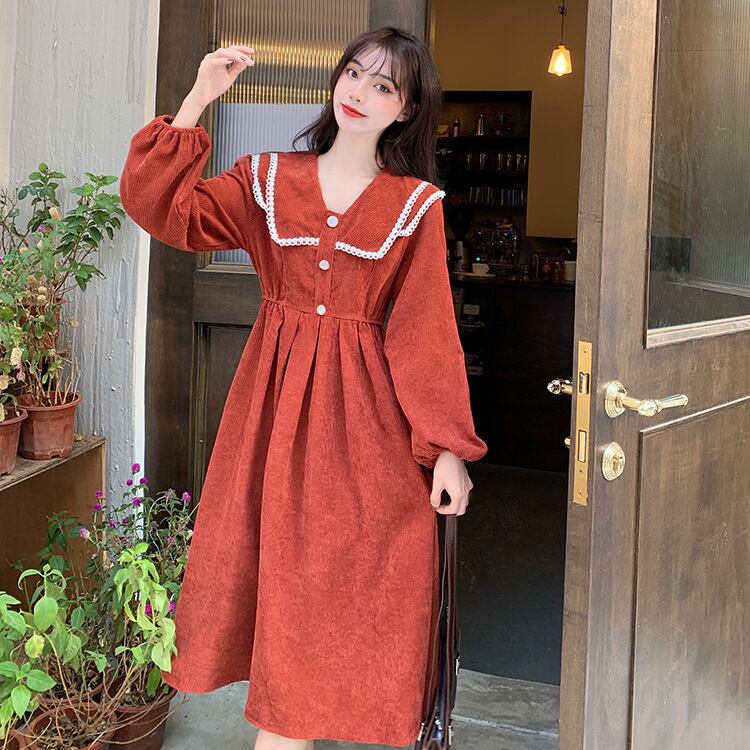 フレンチティーブレイクレトロラペル A ラインドレス 2022 秋と冬の新ウエスト ese ルーズドレス女性 オータム 秋物 ウィンター 冬物 Aライン suifa39723637691 | shop CFT