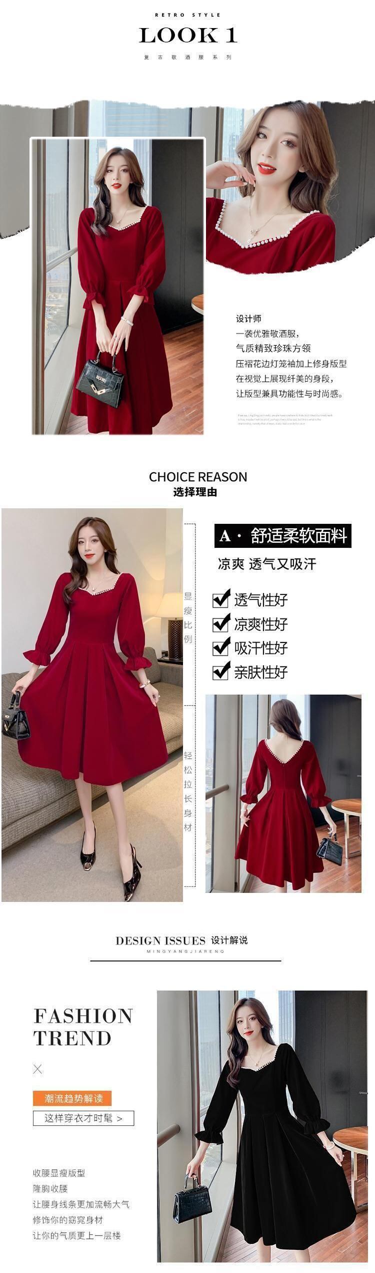 トーストドレス小さな赤い長袖2022年の新しい秋と冬のゆったりとした薄い新しい無地のドレスの女性 ロング レッド オータム 秋物 ウィンター 冬物 ソリッドカラー suifa95526779867 | shop CFT
